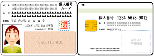 - マイナンバーの通知後、個人の申請により交付される顔写真入りのプラスチックカードです。